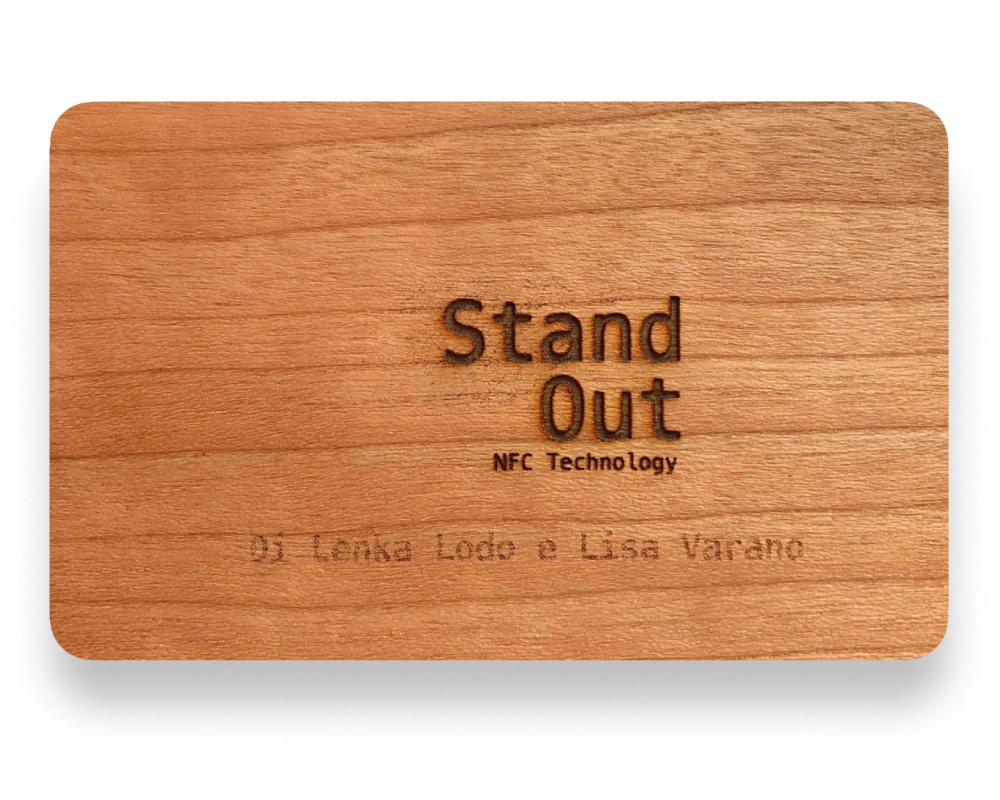 Elegante e sostenibile, il badge in legno di noce inciso su fronte e retro unisce stile e professionalità.