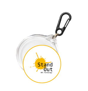 Entrambi i lati possono essere personalizzati con immagini, loghi o testi. Il design è pulito e minimalista, con un mini moschettone nero che facilita il trasporto. Il portachiavi include un chip NFC che permette di condividere informazioni di marketing o biglietti da visita digitali, semplicemente avvicinando il portachiavi a uno smartphone. Stampa QR Code (che rimanda alla Vcard) su richiesta.